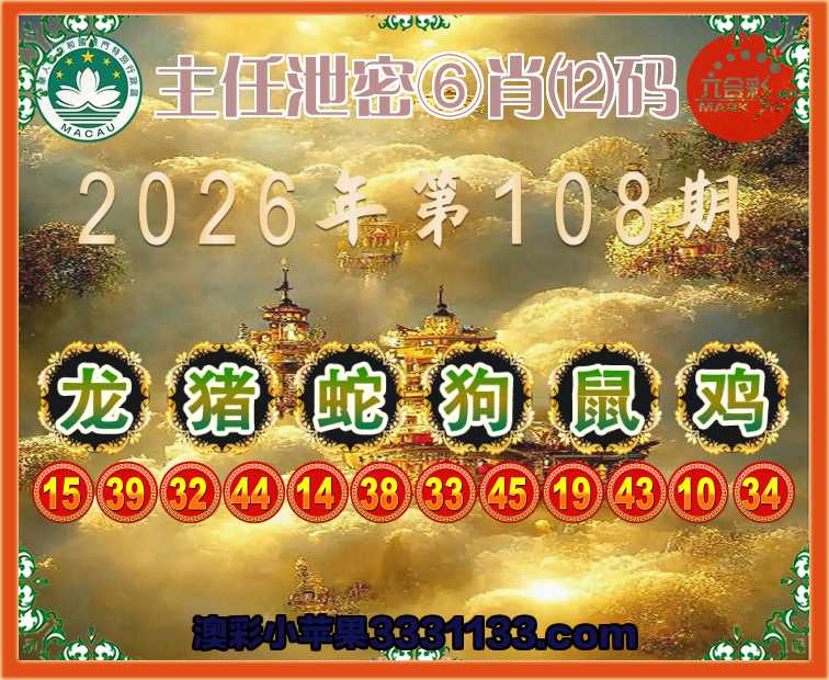 108期: 主任泄密 ⑥肖⑿码【龙猪蛇鼠鸡】开:狗45准上榜高手