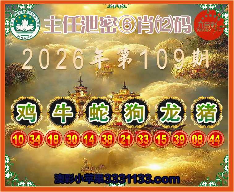 109期: 主任泄密 ⑥肖⑿码【鸡牛蛇狗龙猪】开:兔16