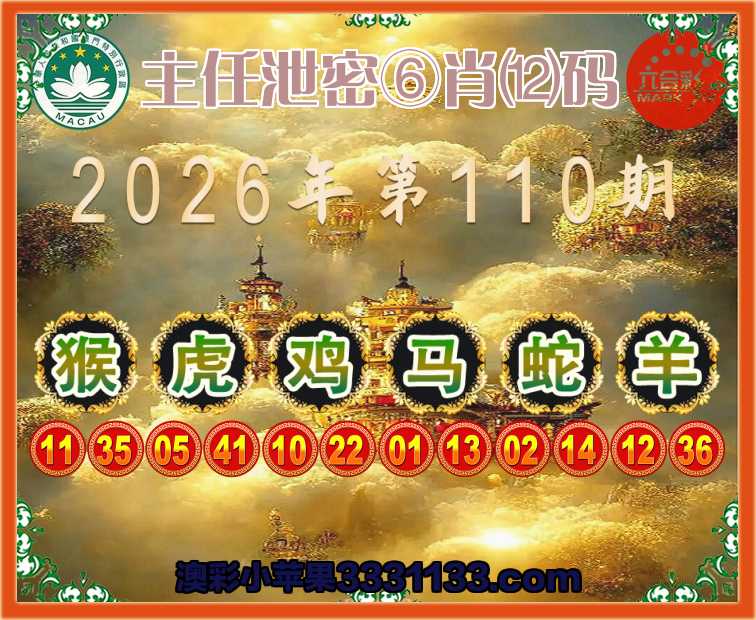 110期: 主任泄密 ⑥肖⑿码【猴虎鸡马蛇羊】开:牛30
